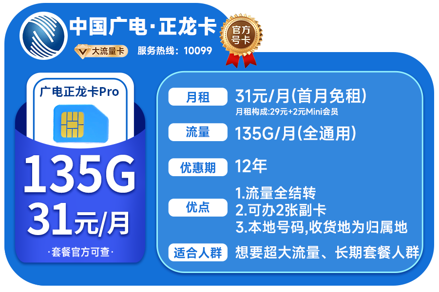这期表哥推荐5款流量卡,综合性价比最高的正龙卡135G,不知道办啥的小白可以选这款。